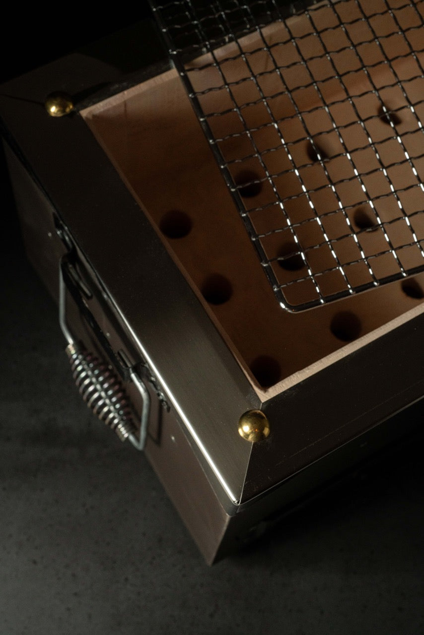 Ce Kiridashi Shichirin est un gril japonais unique, fabriqué de manière artisanale dans la ville de Suzu, au Japon. Produit par Maruwa Kogyo, l'une des deux seules entreprises au monde capables de créer ce Shichirin, il s'agit d'un gril de barbecue rare et unique.