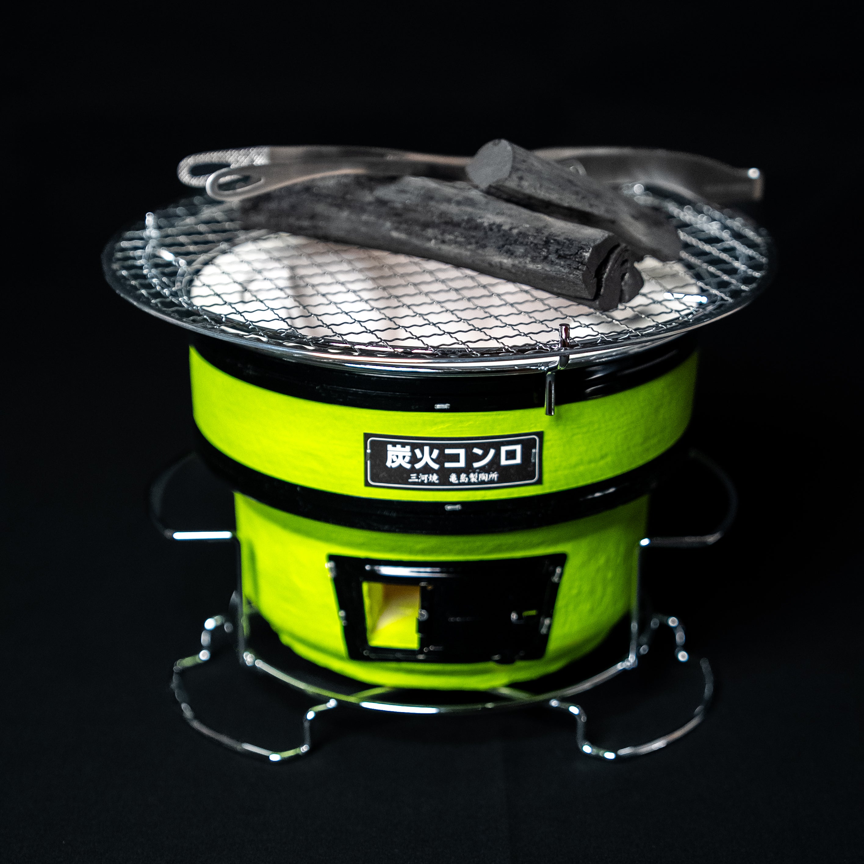 Le Gril Mikawa est un shichirin noir à double couche, mais aujourd'hui, la production de shichirin a évolué au fil du temps pour se concentrer davantage sur la facilité d'utilisation et l'apparence. La forme rectangulaire facile à utiliser, la variété des couleurs et la plaque de fer qui entoure l'extérieur facilitent le nettoyage. Le shichirin est appelé Konro dans cette région, mais les performances et les produits sont les mêmes que ceux du shichirin.