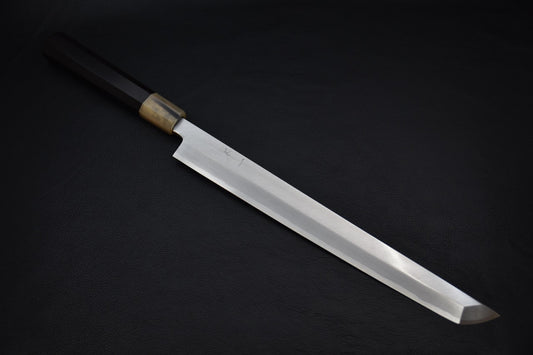 Hitohira Togashi Shirogami #1 Notaremon Mizu Honyaki Yanagiba Sakimaru 300mm Taihei Ébène de Macassar$1,920.00