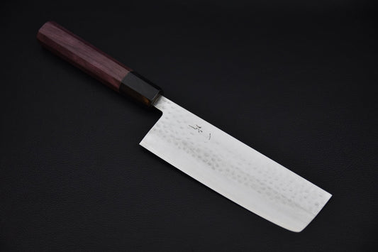 Pour préserver le tranchant de votre Nakiri ou Usuba, il est recommandé de l’aiguiser régulièrement à la pierre à eau. Lavez-le à la main avec de l’eau tiède, sans détergent agressif, puis séchez-le immédiatement pour éviter l’oxydation. Évitez tout contact avec le lave-vaisselle ou des surfaces dures comme la céramique.