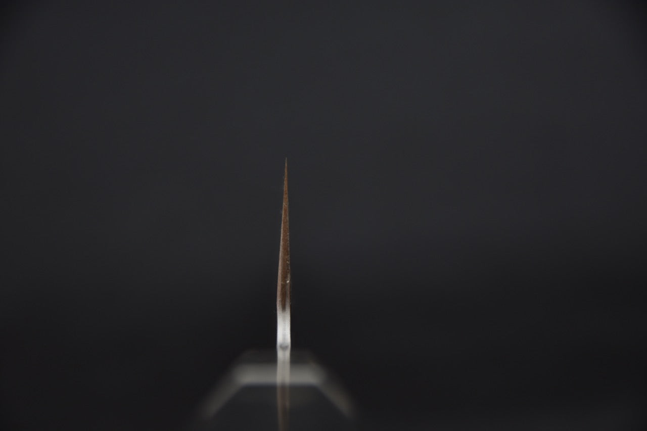 Le Bunka est un couteau de type tout usage qui a un profil plus droit au niveau du tranchant qu’un Santoku. Cela rend le mouvement de coupe de balancier plus difficile à effectuer. Le Bunka est toutefois parfait pour être utilisé avec la méthode « push-cut » ou « pull-cut ». Sa pointe fine apporte précision et agilité puisqu’elle passe plus facilement au travers des aliments lors de la coupe.