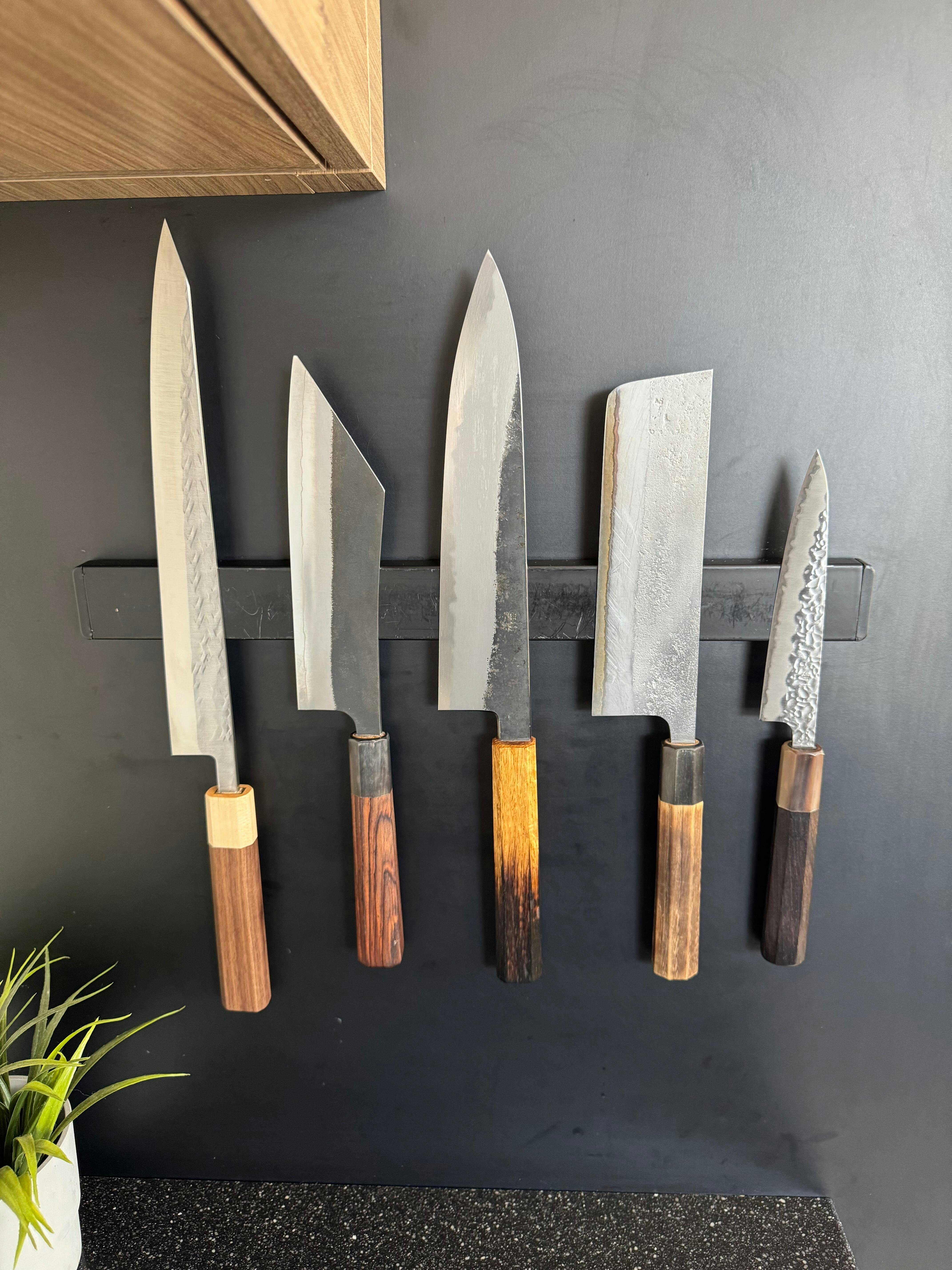 La série Sumi d’Hado est forgée à partir de Shirogami 2(acier blanc numéro 2) par le Maître forgeron Yoshikazu Tanaka et émoulez par Tadataka Maruyama de Fukui Co & Ltd. Recouvert d’acier en fer doux oxydable et arborant un beau finit kurouchi, la série Sumi rejoindra les plus traditionalistes d’entre nous qui pourront apprécier les aspects d’une lame complètement carbone. Construit avec une hauteur de lame plus élevée, la série Sumi se démarque des autres séries d’Hado. Couplez à l’émoulage concave de Tadataka qui donne un tranchant très mince, on peut qualifier ces lames de laser. Nous recommandons cette série aux cuisiniers professionnels ayant une bonne expérience des lames qui sont complètement carbones, aux adeptes de couteaux japonais traditionnels et à tous ceux qui sont prêts à faire le saut dans le monde des couteaux en carbone.