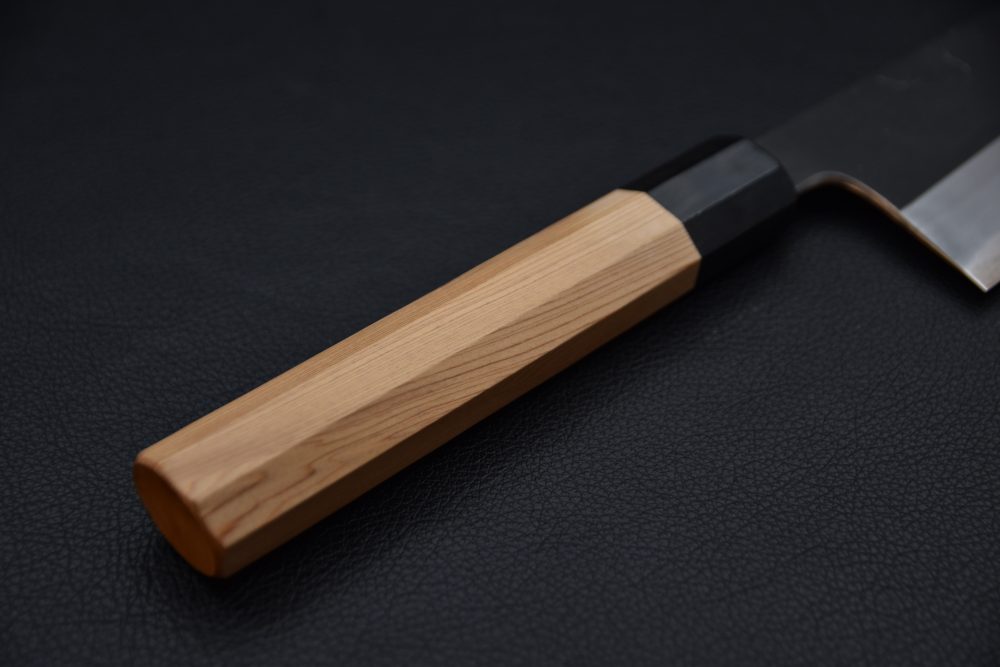 The Japanese word Gyuto (牛刀) literally translates to beef sword. The gyuto is the equivalent of the Western chef's knife, and is designed to cut everything: vegetables, meats and fishes. It is made to be used with the push-cut method, lifting the blade between each cutting motion, or with the rocking motion method. It is important that the blade is straight upon impact with the cutting board to avoid damage to the knife edge.