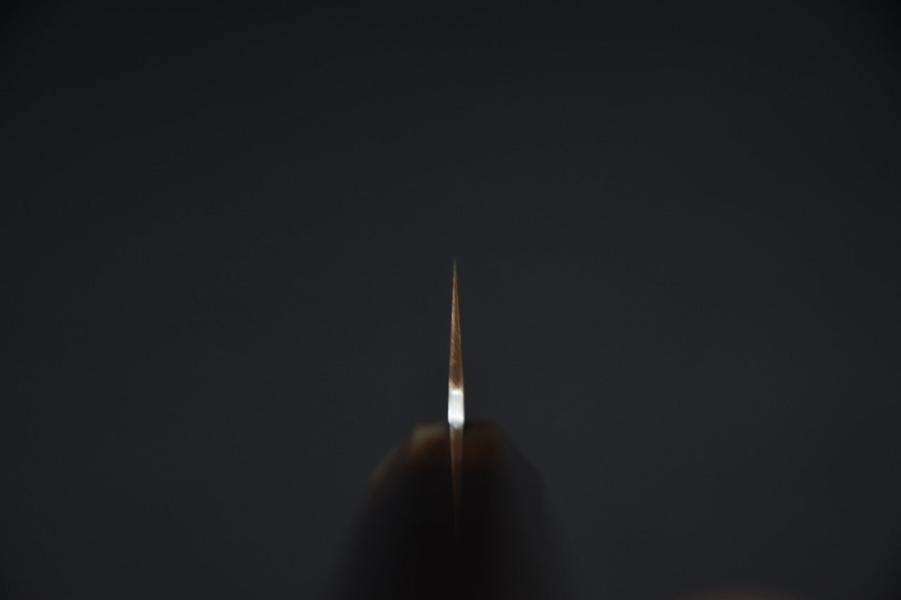 L’acier Aogami Super étant un acier carbone, il développera naturellement une patine au fil du temps. Il est recommandé d’essuyer la lame après utilisation et d’éviter les aliments très acides pendant de longues périodes de contact. Avec un entretien approprié et un aiguisage régulier, ce couteau japonais offre une expérience de coupe vive, précise et durable.