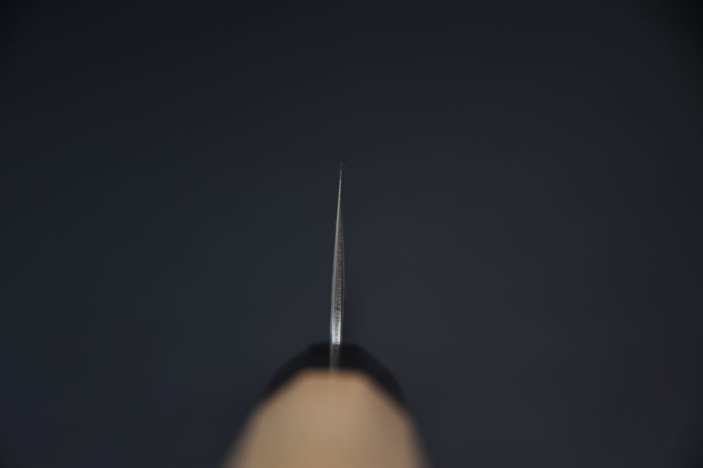 Pour prolonger la durée de vie du Gyuto et maintenir son tranchant, nous recommandons de l’affûter régulièrement avec un fusil en céramique de qualité ou en utilisant le bloc de cuir. Pour ce qui est de l'aiguisage sur pierre, nous recommandons de le faire une ou deux fois par années pour une utilisation non professionnelle. L’aiguisage sur pierre doit être fait avec soin et précision, en respectant l'angle de la lame et en suivant les techniques appropriées. Si vous voulez, on s’en occupe via notre service d’aiguisage expert. Si votre Gyuto est fabriqué à partir d’acier oxydable, il est essentiel de prendre soin de nettoyer et de sécher correctement la lame après chaque utilisation, afin de prévenir la formation de rouille et d'autres dommages liés à l'humidité. Dans le cas où votre couteau est fait d’acier inoxydable, on vous conseille tout de même de prendre soin de celui-ci et de ne pas le mettre au lave-vaisselle par exemple.