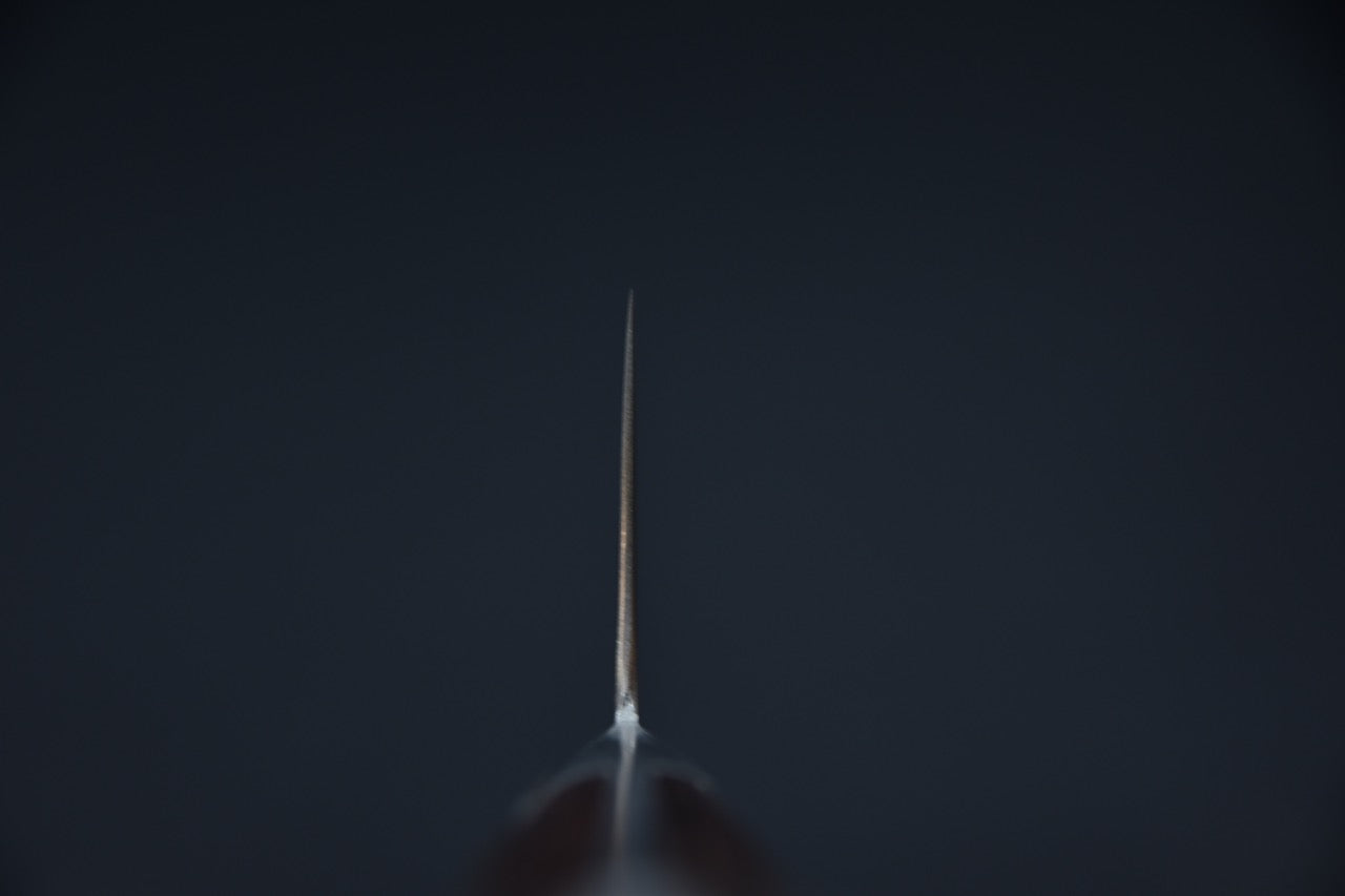 Le mot japonais Gyuto (牛刀) se traduit littéralement par épée à boeuf. Le gyuto est l’équivalent du couteau de chef occidental et est conçu pour tout couper : légumes, viandes et poissons. Il est fait pour être utilisé avec la méthode « push-cut », en soulevant la lame entre chaque mouvement de coupe, ou encore avec la méthode du balancier. Il est important que la lame soit droite au moment de l’impact avec la planche à découper pour éviter les dommages au niveau du tranchant du couteau.