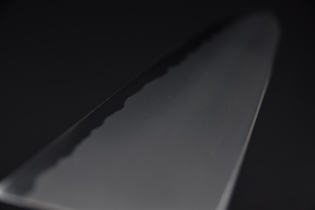 La lame du Gyuto est conçue en acier japonais de haute qualité, ce qui lui confère un tranchant exceptionnel et une grande résistance à l'usure. Les aciers utilisés dans la fabrication des Gyuto sont traités thermiquement à des niveaux élevés, ce qui leur permet de maintenir leur tranchant pendant une période plus longue par rapport à d'autres types de couteaux.