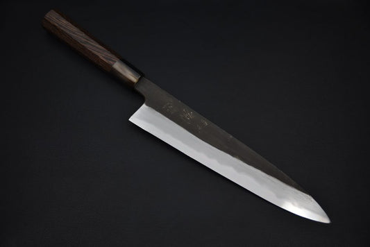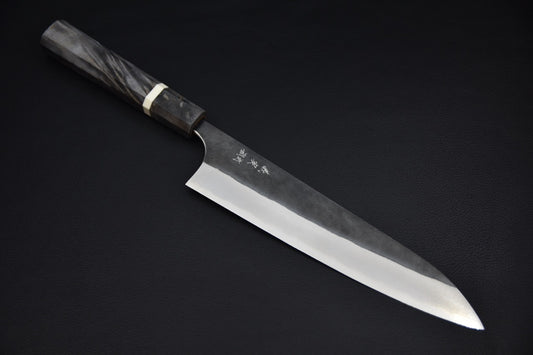 Le Gyuto, également connu sous le nom de 牛刀 en japonais, est un couteau polyvalent qui se traduit littéralement par (épée à bœuf). Il est considéré comme l'équivalent du couteau de chef occidental et est spécialement conçu pour accomplir toutes sortes de tâches de coupe, que ce soit pour les légumes, les viandes ou les poissons. Doté d'une lame tranchante et d'une construction solide, le Gyuto est un outil indispensable pour tout cuisinier professionnel ou amateur soucieux de la précision et de la qualité de ses coupes.
