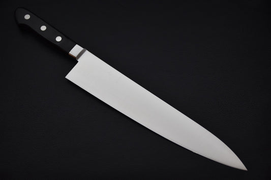 En conclusion, le Gyuto est un couteau de chef japonais polyvalent, doté d'une lame tranchante et d'une construction solide. Son nom, qui signifie littéralement épée à bœuf, témoigne de sa capacité à accomplir toutes sortes de tâches de découpe avec précision et efficacité. Que ce soit pour couper des légumes, des viandes ou des poissons, le Gyuto est l'outil idéal pour les chefs experts et les amateurs passionnés de cuisines. Veillez à utiliser les bonnes techniques de coupe, à entretenir régulièrement le couteau et à lui accorder les soins nécessaires pour profiter de performances optimales à long terme.