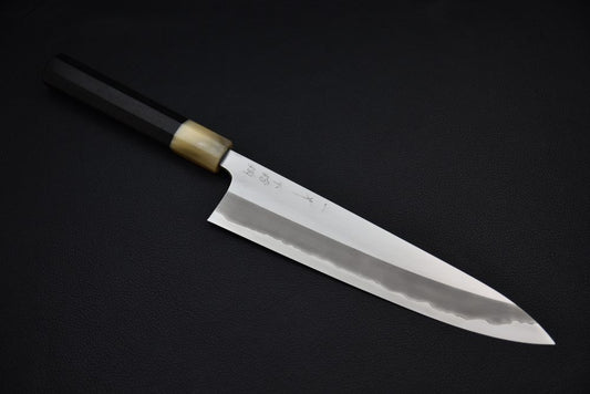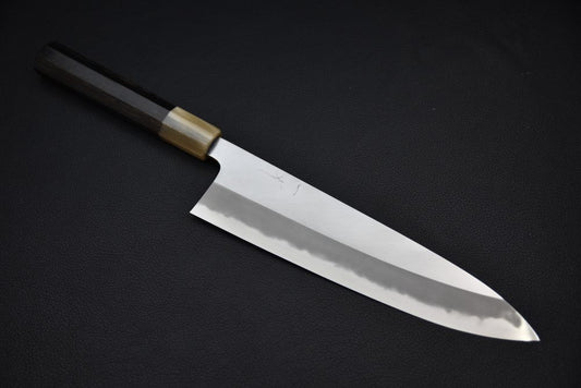 Le Gyuto, également connu sous le nom de 牛刀 en japonais, est un couteau polyvalent qui se traduit littéralement par (épée à bœuf). Il est considéré comme l'équivalent du couteau de chef occidental...