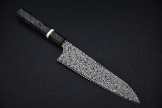Pour prolonger la durée de vie du Gyuto et maintenir son tranchant, nous recommandons de l’affûter régulièrement avec un fusil en céramique de qualité ou en utilisant le bloc de cuir. Pour ce qui est de l'aiguisage sur pierre, nous recommandons de le faire une ou deux fois par années pour une utilisation non professionnelle. L’aiguisage sur pierre doit être fait avec soin et précision, en respectant l'angle de la lame et en suivant les techniques appropriées. Si vous voulez, on s’en occupe via notre service d’aiguisage expert. Si votre Gyuto est fabriqué à partir d’acier oxydable, il est essentiel de prendre soin de nettoyer et de sécher correctement la lame après chaque utilisation, afin de prévenir la formation de rouille et d'autres dommages liés à l'humidité. Dans le cas où votre couteau est fait d’acier inoxydable, on vous conseille tout de même de prendre soin de celui-ci et de ne pas le mettre au lave-vaisselle par exemple.