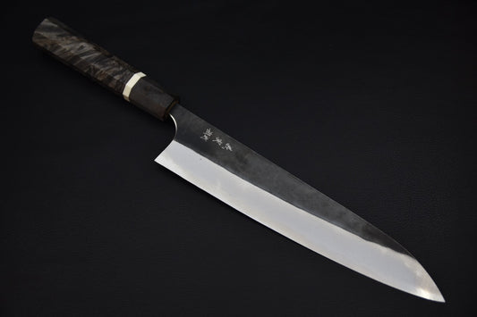 couteau japonais Gyuto avec lame Aogami #2, profil long et élégant, finition soft-stainless visible