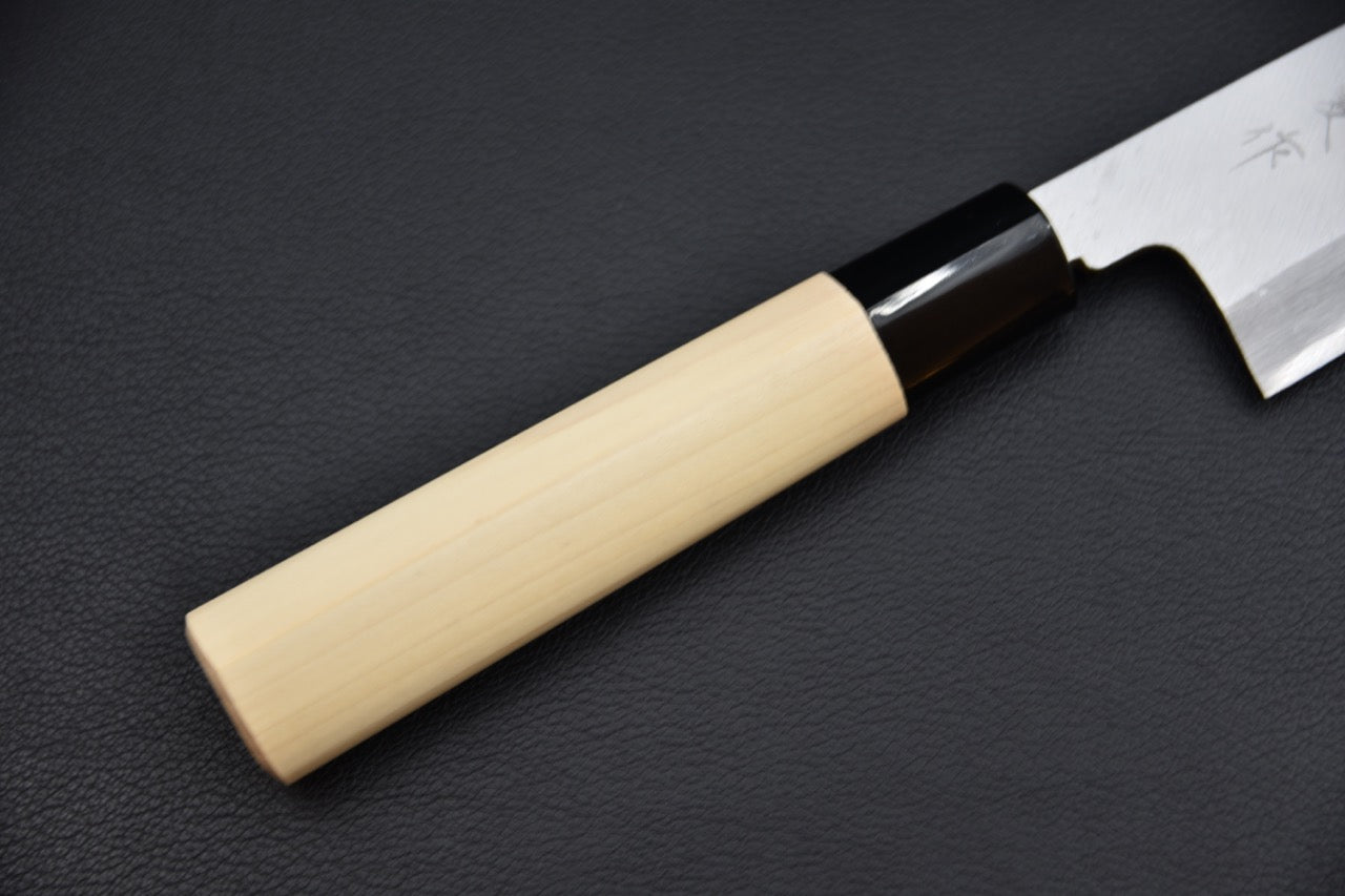 Il excelle dans la préparation du poisson, mais est un allié de choix pour la coupe de viande et de légume une fois maîtrisé. Misez sur cet élégant couteau Funayuki Shirogami de la fameuse maison Morihei.