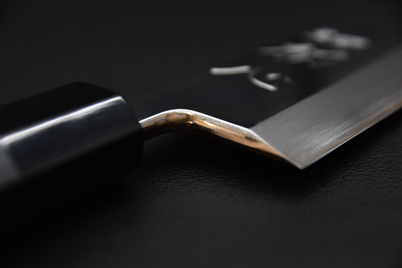 Kikuchiyo, le célèbre forgeron de Sakai, Osaka, s'est fait connaître au début des années 2000 lorsqu'il a été invité à rejoindre les maîtres artisans de Sakai. Ses débuts précoces dans le domaine de la forge lui ont permis d'acquérir des connaissances et des compétences approfondies avant d'être confronté à des limitations physiques. Kikuchiyo a notamment expérimenté avec audace des aciers non conventionnels tels que l'acier inoxydable, ce qui a permis à ses couteaux Ginsan (Silver 3) d'être très convoités par les chefs japonais. Son expertise s'étend à la trempe Honyaki, qui produit de magnifiques motifs Hamon et permet d'obtenir la dureté et la consistance idéales. Les couteaux de Kikuchiyo ont gagné le respect des affûteurs et des finisseurs de Sakai, et il reste fidèle à son rêve de réussite, rendant hommage à la forge de son maître dans chaque lame qu'il forge.