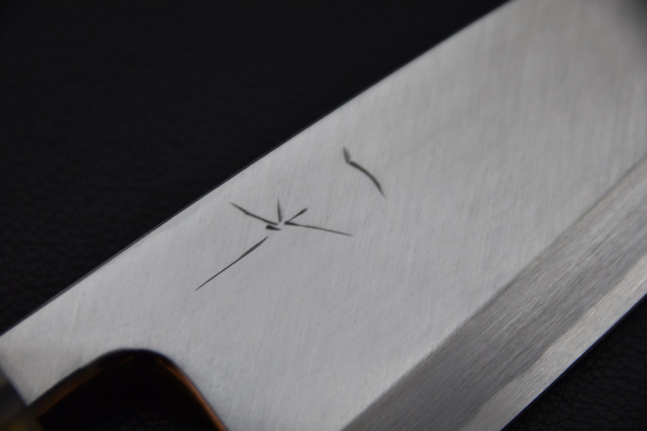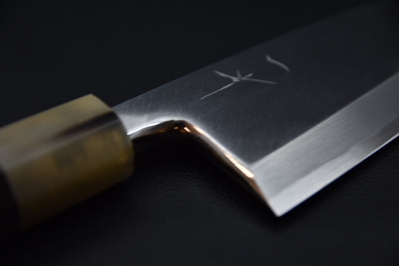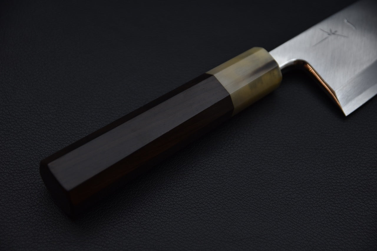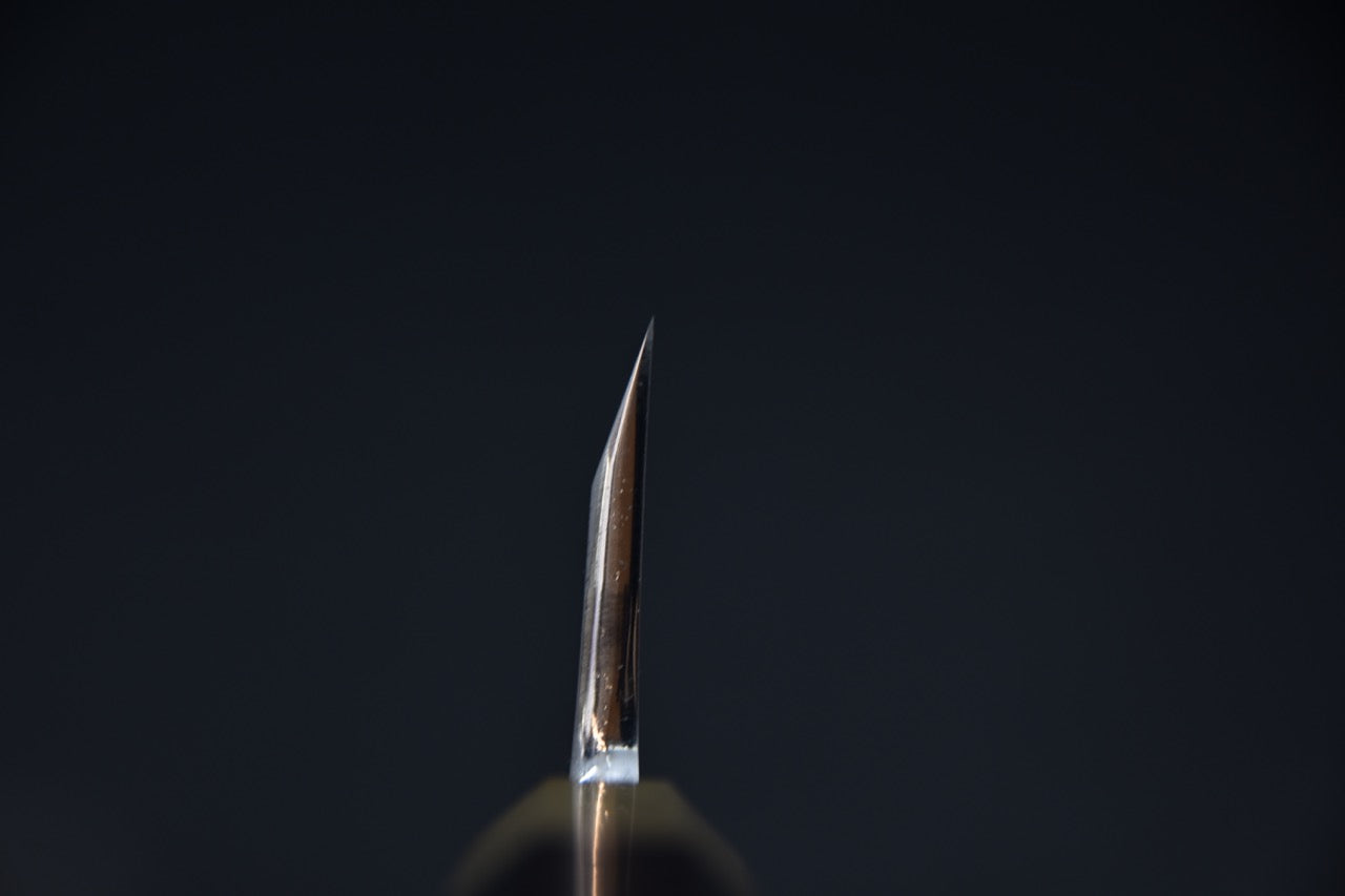 Le couteau japonais Deba, également connu sous le nom de Hon-Deba, est un outil spécialisé qui excelle dans la découpe du poisson entier. Son nom se traduit littéralement par "couteau à découper pointu", ce qui souligne sa conception et son objectif précis. Ce couteau est un élément essentiel dans la cuisine japonaise traditionnelle et offre une polyvalence exceptionnelle pour travailler le poisson avec précision.