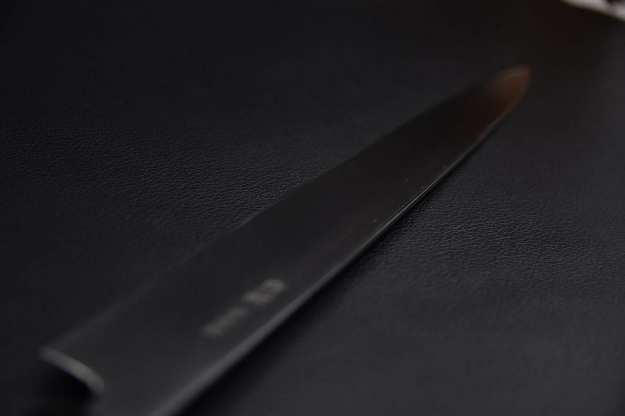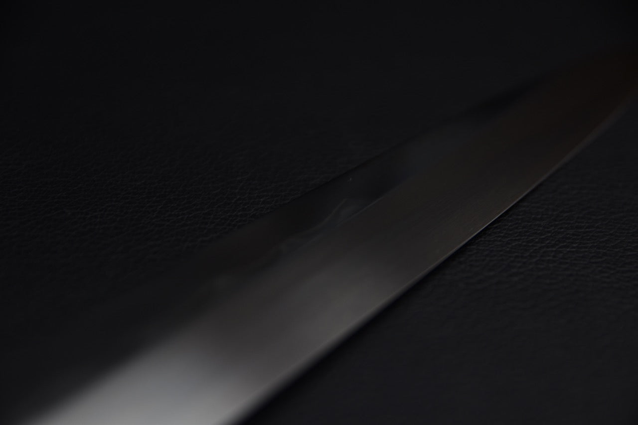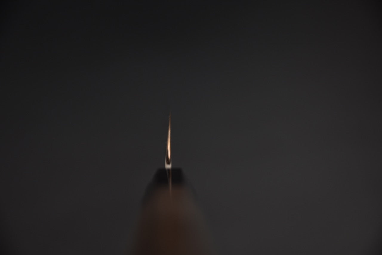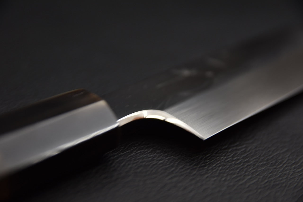 Le Shirogami #1 par Hitachi steel co se traduit par acier blanc #1 et est une version améliorée du Shirogami #2 car il contient un taux de carbone plus élevé. Il tient sa dénomination en référence à la couleur du papier dans lequel il est emballé une fois produit. Il est considéré comme un des aciers les plus purs, après le Tamahagane, ce qui permet d’obtenir un tranchant plus incisif que la plupart des autres aciers. Cependant, il sera généralement plus fragile et peut briser plus facilement par suite d’une mauvaise utilisation. Maîtriser la forge du shirogami #1 pour exploiter son plein potentiel n’est pas simple et demande une expertise que peu de forgerons détiennent. C’est dans le processus de fabrication d’un couteau de type Mizu Honyaki que vous retrouverez le shirogami #1 sous sa version la plus difficile a forgée, mais aussi la plus tranchante.