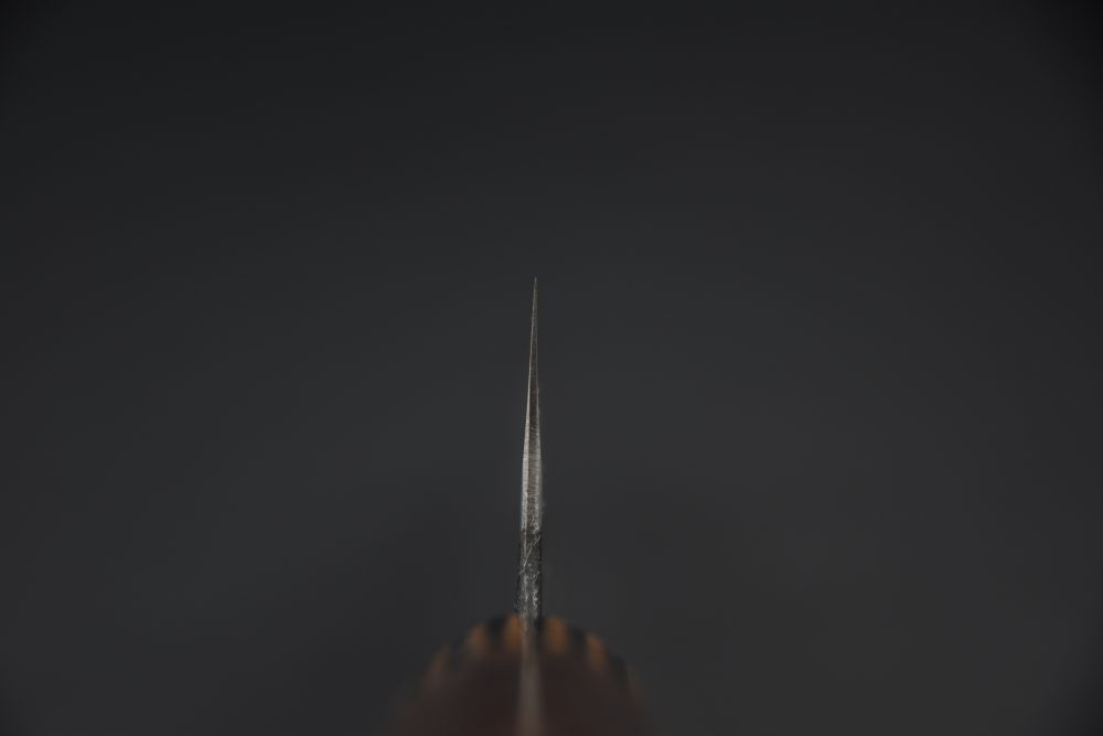 Le Kiritsuke Gyuto est un croisement entre le kiritsuke traditionnel et le gyuto. Le profil du tranchant, généralement plus droit, et sa pointe coupée s’apparentent au kiritsuke alors que son double biseau est caractéristique du gyuto. Le Kiritsuke Gyuto fait office de couteau de chef dans votre cuisine et peut effectuer la majorité des tâches. On se retrouve habituellement entre 210 et 270 mm.