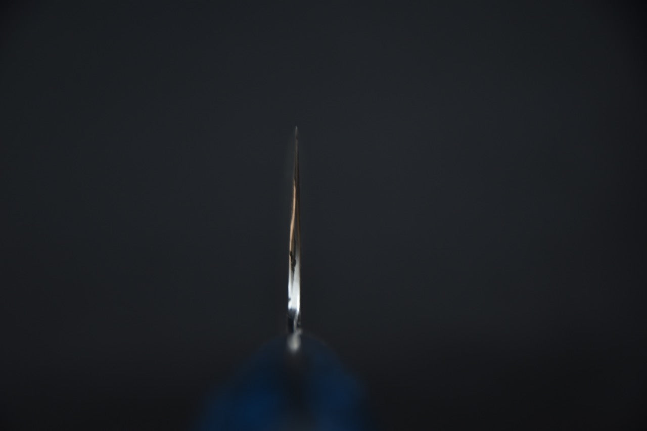 Artisan créatif, Go Yoshizawa fait rayonner l’entreprise familiale. Il est le chef de la forge de Nigara, l’une des forges les plus reconnues au Japon et mondialement, et célèbre pour le travail du damascus. Yoshizawa-san s’appuie sur des bases solides du travail de l’acier qu’il a développées au fil des années afin de découvrir et d’explorer de nouveaux procédés. La forge de Nigara et ses artisans-forgerons continuent de nous épater en nous offrant des couteaux aussi beaux que performants.