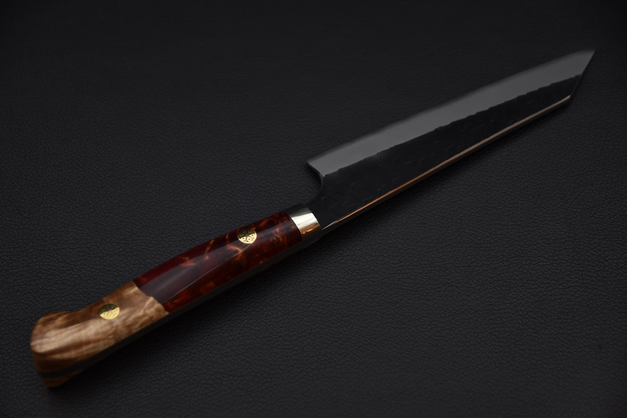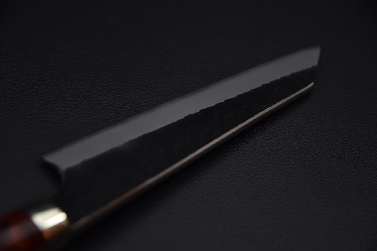 Artisan créatif, Go Yoshizawa fait rayonner l’entreprise familiale. Il est le chef de la forge de Nigara, l’une des forges les plus reconnues au Japon et mondialement, et célèbre pour le travail du damascus. Yoshizawa-san s’appuie sur des bases solides du travail de l’acier qu’il a développées au fil des années afin de découvrir et d’explorer de nouveaux procédés. La forge de Nigara et ses artisans-forgerons continuent de nous épater en nous offrant des couteaux aussi beaux que performants.