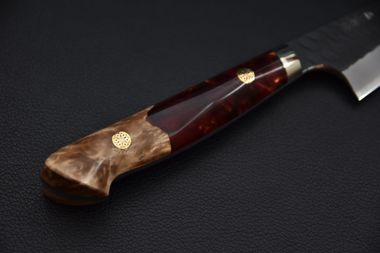 Takefu Special Steel Co Ltd, créateur du populaire acier VG-10, souhaitait, avec le SG2, offrir un produit supérieur sur tous les aspects : dureté, rétention de coupe, durabilité, etc.
