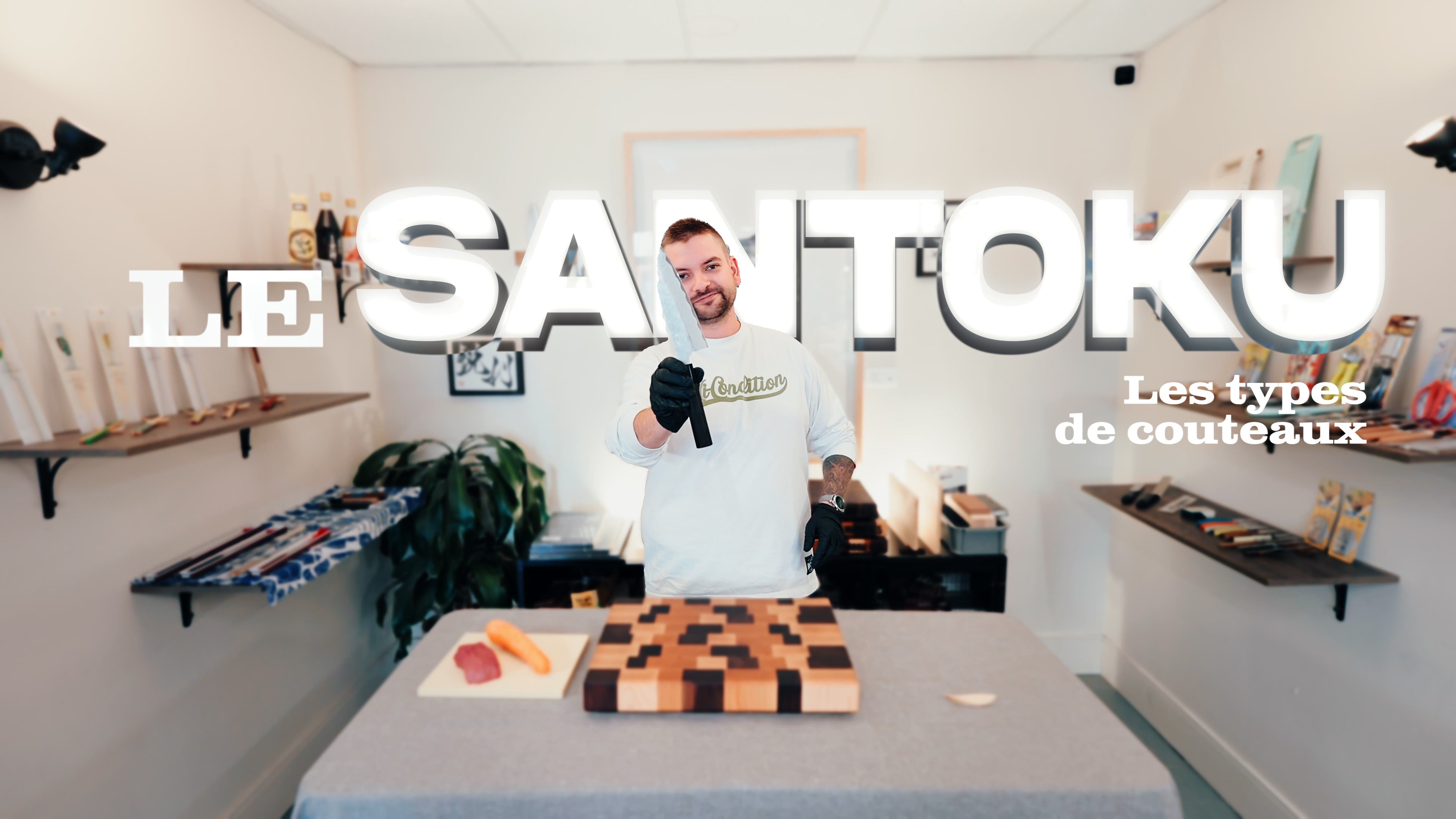 Le couteau Santoku, ou encore Santoku bōchō, est un couteau japonais Santoku polyvalent d'origine japonaise. Son nom signifie littéralement trois vertus ou trois utilisations en japonais. Mesurant généralement entre 15 et 18 cm de long (6 et 7 pouces), sa lame possède un tranchant plat et une pointe incurvée en kamagata formant un angle d'environ 60 degrés. Le terme Santoku fait référence à la grande variété d'ingrédients que ce couteau Santoku peut couper, tels que la viande, le poisson et les légumes, ainsi qu'aux tâches qu'il peut accomplir, comme tranchée, hacher et émincer. Ces deux interprétations soulignent l'aspect multi-usage et polyvalent de ce couteau japonais Santoku de cuisine.