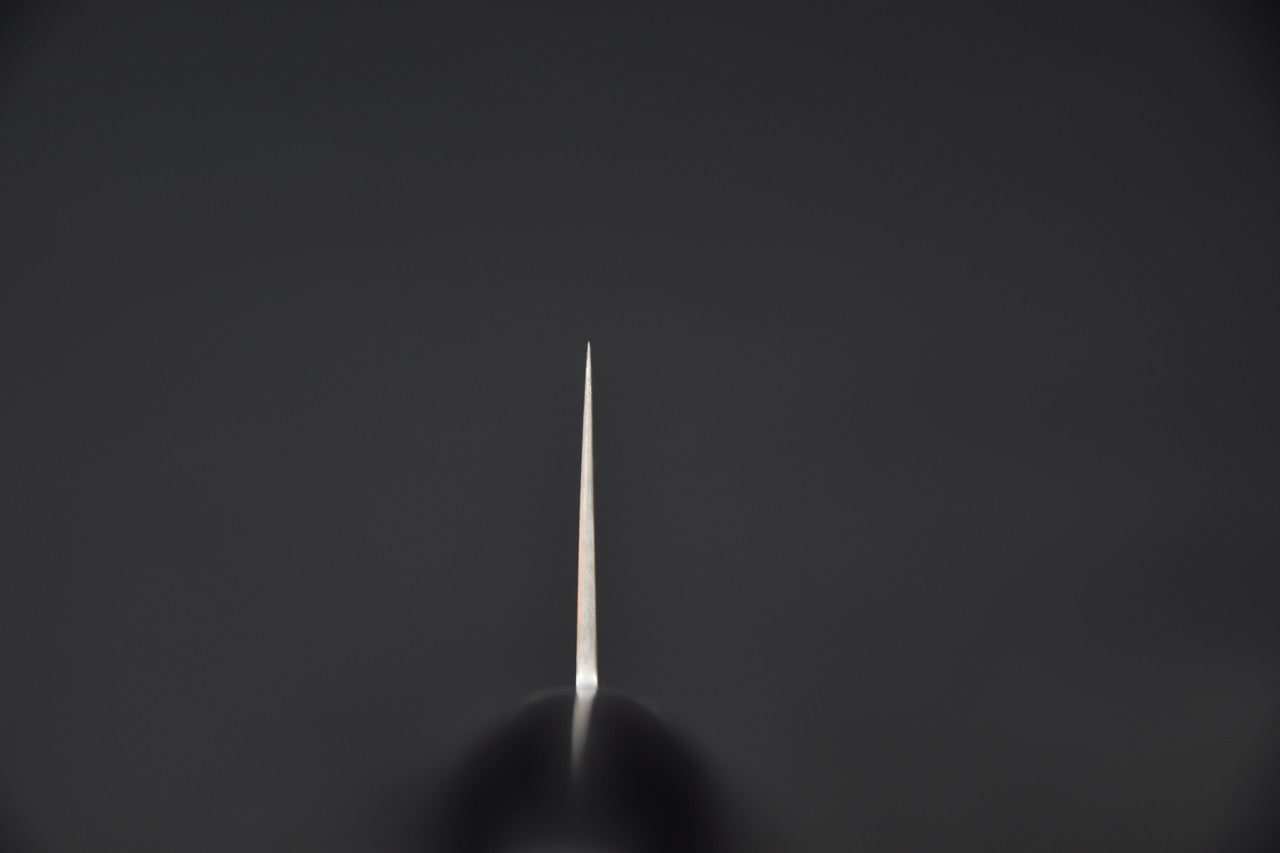 Le couteau Santoku, ou encore Santoku bōchō, est un couteau japonais Santoku polyvalent d'origine japonaise. Son nom signifie littéralement "trois vertus" ou "trois utilisations" en japonais. Mesurant généralement entre 15 et 18 cm de long (6 et 7 pouces), sa lame possède un tranchant plat et une pointe incurvée en kamagata formant un angle d'environ 60 degrés. Le terme "Santoku" fait référence à la grande variété d'ingrédients que ce couteau Santoku peut couper, tels que la viande, le poisson et les légumes, ainsi qu'aux tâches qu'il peut accomplir, comme tranchée, hacher et émincer. Ces deux interprétations soulignent l'aspect multi-usage et polyvalent de ce couteau japonais Santoku de cuisine.