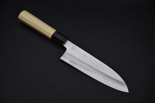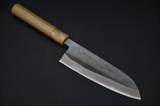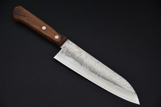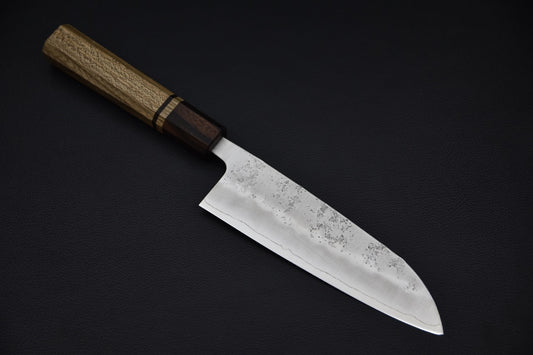 Le couteau Santoku a été populariser au Japon au début des années 1940, utiliser par les familles, cette est lame capable d'accomplir plusieurs tâches sans changer de couteau. Contrairement aux modèles spécialisés comme le Nakiri ou l’Usuba, conçus pour des usages très précis, le Santoku a été imaginé comme un couteau tout usage, capable de s’adapter aux besoins variés de la cuisine quotidienne. Grâce à sa lame plate et à sa pointe abaissée, il permet des découpes nettes, efficaces et rapides. Il est devenu populaire pour sa maniabilité, son équilibre et sa précision. Aujourd’hui, il est utilisé dans les cuisines du monde entier et est reconnu comme une référence parmi les lames japonaises modernes.
