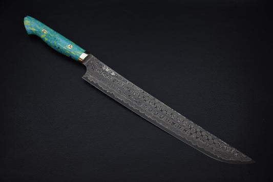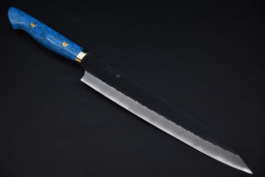 Le Sujihiki, qui se traduit par "trancheur de chair" en japonais, est un couteau polyvalent qui mérite une place dans votre collection. Il est spécialement conçu pour trancher les protéines désossées. Avec sa lame longue et étroite à double biseau, le Sujihiki tranche sans effort le poisson et la viande, en minimisant les frottements et en préservant l'intégrité de chaque ingrédient.