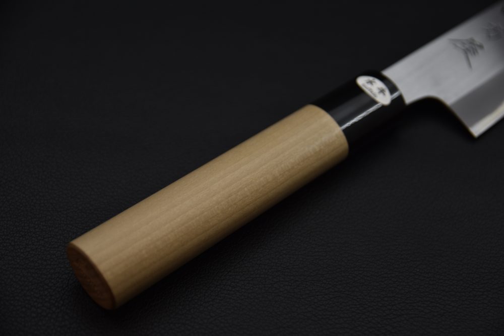 Le couteau Sujihiki sert principalement à trancher le poisson, la viande, les viandes désossées et les légumes tendres. Sa lame étroite permet de trancher avec aisance et précision, ce qui le rend particulièrement utile pour les plats à base de poisson cru. La conception du couteau permet d'obtenir des tranches très fines en un seul mouvement, ce qui évite la friction lorsque chaque tranche est coupée en douceur. Le couteau Sujihiki se caractérise par son double tranchant, ce qui le rend accessible aux gauchers et aux droitiers. Il possède une lame longue et étroite avec un bout pointu, généralement d'une longueur de 240 à 300 mm et d'une hauteur de 30 à 40 mm.