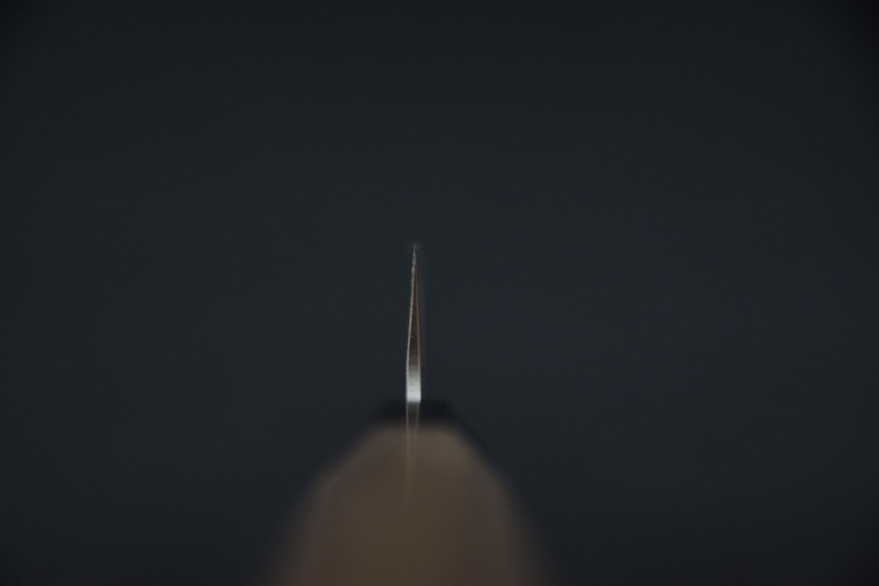 Sujihiki se traduit par ‘’trancheur de chaire’’, ce qui décrit bien son rôle. Généralement longue de 240 mm à 300 mm et d’une hauteur de 34 mm à 40mm, la lame du sujihiki est parfaite pour effectuer de longs mouvements de coupe du talon à la pointe. Une hauteur de lame moindre diminue la friction au moment de la coupe et gardera les fibres des protéines que vous coupez le plus intact possible.