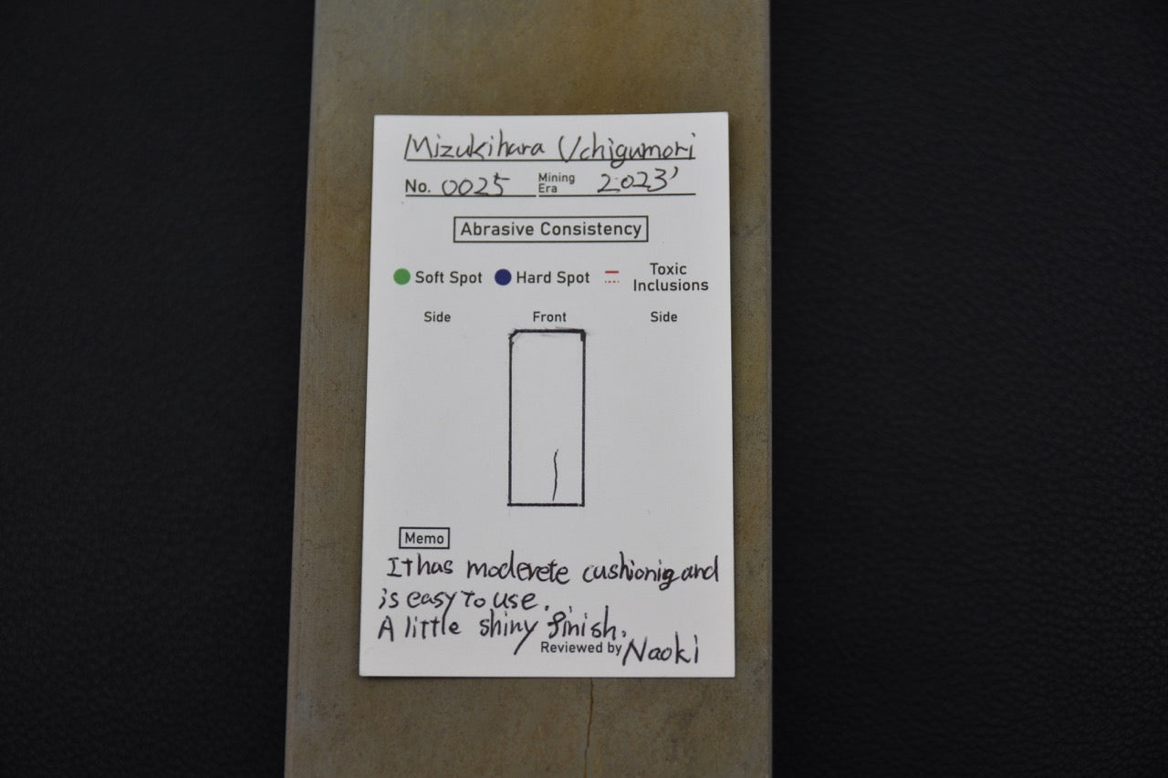 Uchigumori stones, renowned for their indispensable role in the Japanese sword and high-end japanese kitchen knife polishing processes, are exclusive treasures found only in the Mizukihara and Ohira mines of Western Kyoto. These stones, hailing from the Tenjyo Suita layer of the Hon-Kuchi Naori stratum, are essential for achieving the coveted kasumi finish on Tamahagane steel, showcasing their unmatched capability to enhance both the aesthetic and functional quality of blades. Available in soft (Hato) and hard (Jito) varieties, Uchigumori stones hold a special place in the hearts of Togishi (sword polishers) and culinary experts, prized for their unique ability to sharpen and polish traditional Japanese blades with unparalleled precision. Despite their softer nature, which is typically considered less than ideal for sharpening, these stones are celebrated for their effectiveness in both refining and accentuating the craftsmanship of traditional Japanese blades. The exclusivity of Uchigumori stones, found only in the Mizukihara and Ohira mines, alongside their deep-rooted connection to Japanese artisanal traditions, elevates them to a status of highly sought-after and expensive resources, embodying the fusion of natural elegance, artisanal skill, and cultural heritage in the domain of Japanese blade artistry.