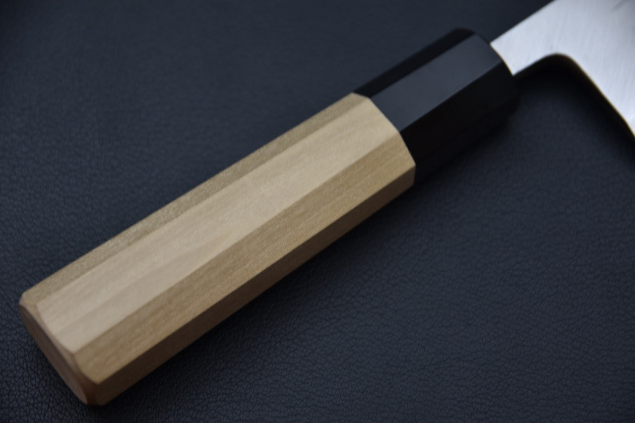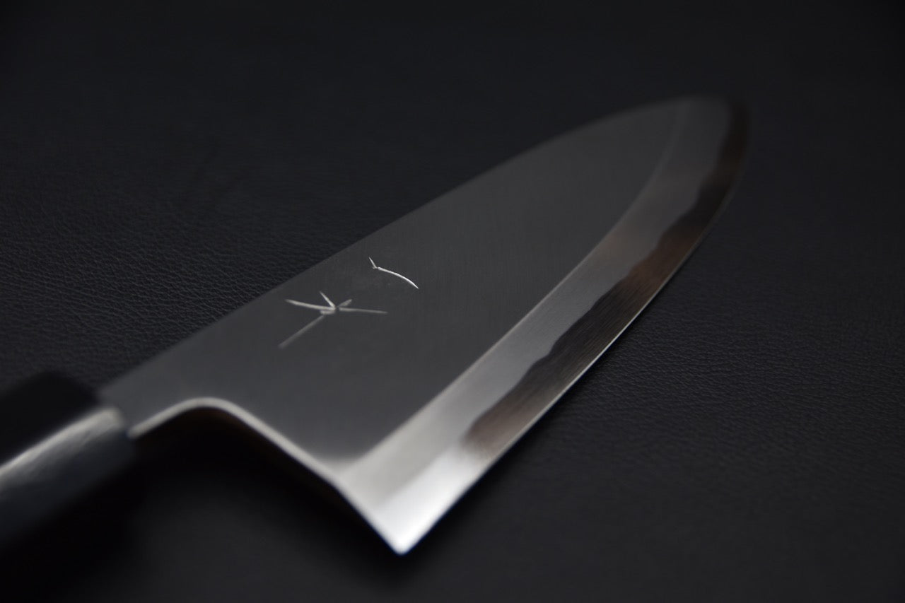 Deba literally translates to "pointed carving knife" and can also be called Hon-Deba (true Deba). Japanese specialty knives are made with a specific purpose and they excel at what they are designed to do. In the case of the Deba, the knife is perfect for working on whole fish since each part of the blade has its own function. The sturdier heel is used to cut the head and tail of the fish, as well as the small bones. The more delicate tip is used to penetrate the flesh of the fish, as well as to guide the cook to the spine of the fish. The center of the knife, with its curved shape, is used to cut as close to the spine as possible to lift the fish fillets and remove the skin. The Deba can also be used to butcher poultry and small game, although this is not its specialty.