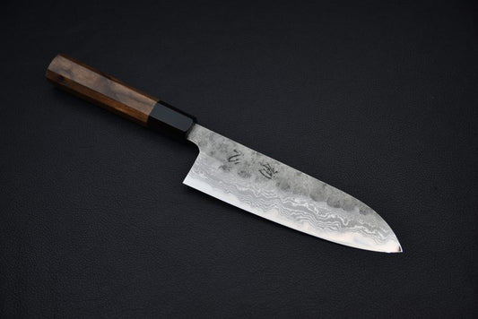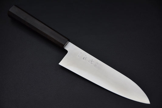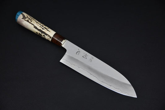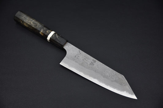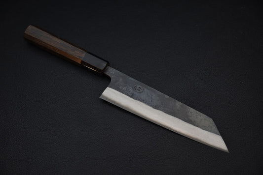 The Santoku and Bunka knives are both Japanese all-purpose knife types, but their shapes and uses vary subtly. The Santoku knife has a wide blade with a slightly rounded tip, suitable for rocking movements when cutting. It is known for its versatility, excelling at cutting meat, fish, and vegetables. The Bunka knife, on the other hand, features a more angular blade with a pronounced k-tip tip, ideal for precision cutting. Its more assertive silhouette is appreciated for tasks requiring refined gestures, such as finely slicing vegetables or delicately carving fish. Both blades are similar in length (150 to 180 mm) and offer excellent control, but the Bunka knife is more suited to users looking for a more technical finish. At Stay Sharp, we recommend choosing your all-purpose knife based on your gesture, your skill level, and the type of food you cook most often.