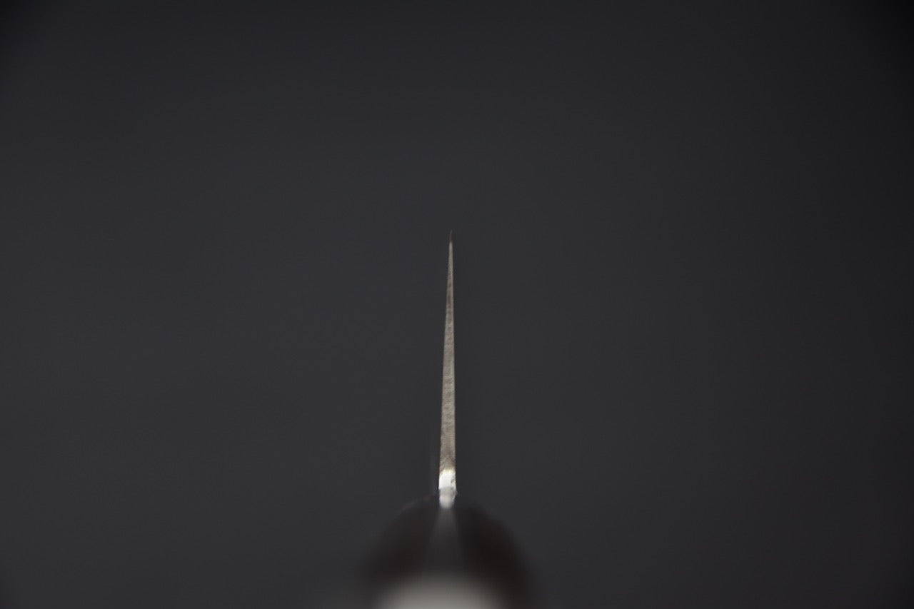 The Gyuto, also known as "牛刀" in Japanese, is a versatile knife that literally translates to "ox sword." It is considered the equivalent of a Western chef's knife and is specially designed to accomplish all kinds of cutting tasks, whether for vegetables, meat, or fish. Featuring a sharp blade and solid construction, the Gyuto is an essential tool for any professional or amateur cook who cares about the precision and quality of their cuts.