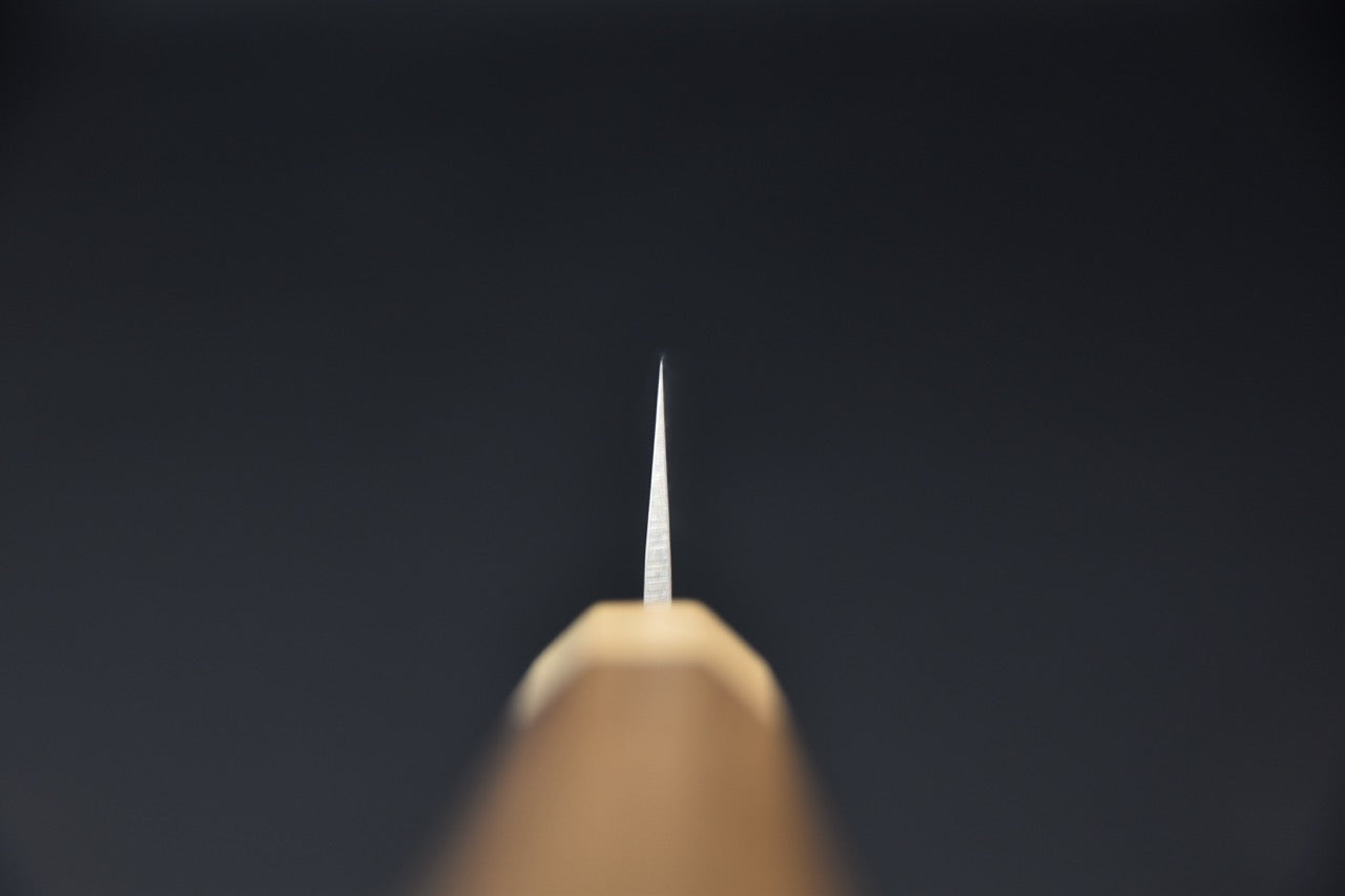The Sujihiki, which translates to "flesh slicer" in Japanese, is a versatile knife that deserves a place in your collection. It is specifically designed for slicing boneless proteins. With its long, narrow, double-beveled blade, the Sujihiki effortlessly slices through fish and meat, minimizing friction and preserving the integrity of each ingredient.