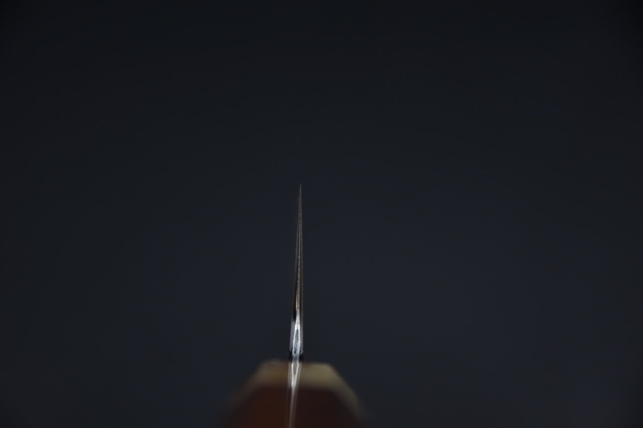 A collaboration between master blacksmith (名工) Satoshi Nakagawa and master grinder Naohito Myojin. Forged from Aogami #1 steel and coated with soft iron sporting a beautiful damascus, this blade is as beautiful as it is functional.