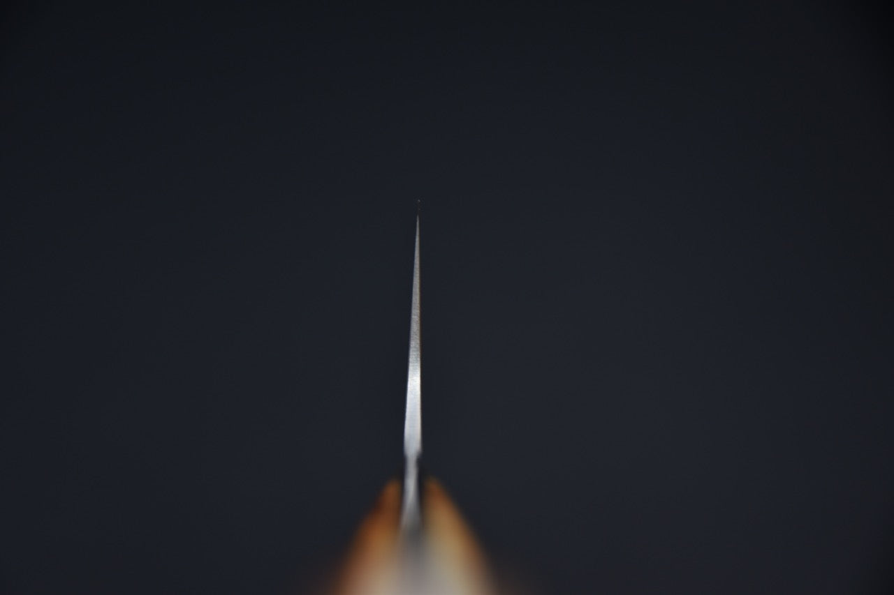 VG-10 is a stainless steel produced by Takefu Special Steel in the early 1960s and is still in use more than 60 years later. This steel was specially designed for knife making and is used by many master blacksmiths in Japan. Despite the 15% chromium in the composition which gives it a high corrosion resistance, VG-10 can reach an HRC of 60-61. This is due to the addition of 1.5% Cobalt which gives the steel a higher hardness with a high temperature quenching treatment.