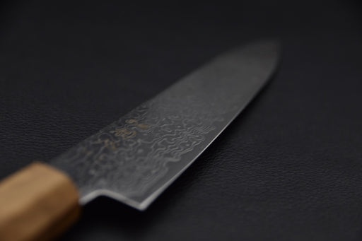 Hatsukokoro knives are distinguished by a unique collaborative approach: each knife is the result of the combined work of master craftsmen specialized in distinct fields, forging, sharpening, polishing, and handle assembly. This artisanal synergy creates blades of exceptional quality, both technically accomplished and aesthetically striking. The original sharpening is consistent, ensuring a professional edge from the first use. Thanks to the use of high-end steels such as Aogami Super or Ginsan, Hatsukokoro knives offer durability, finesse, and cutting performance that meet the expectations of the most demanding cooks.