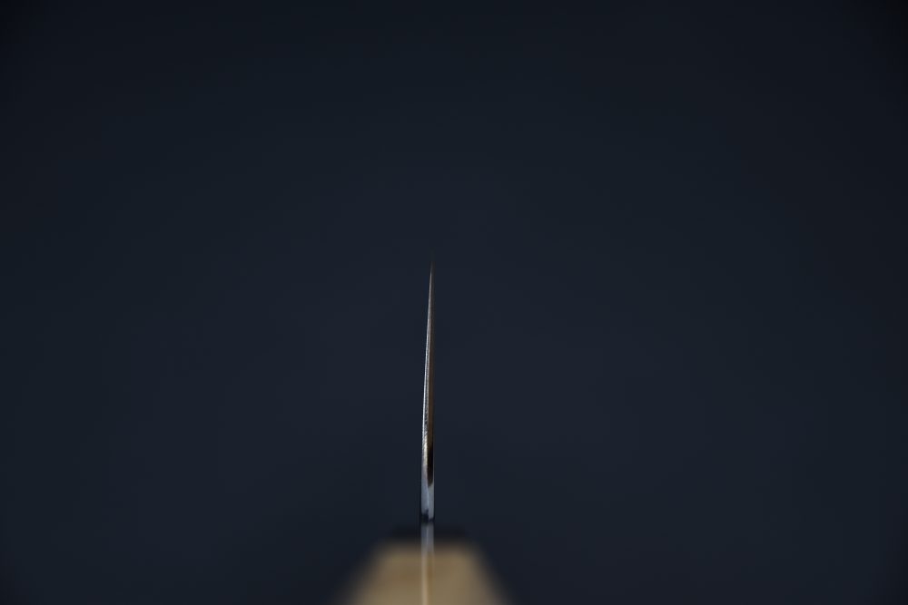 Kiritsuke Gyuto is a cross between traditional kiritsuke and gyuto. The profile of the cutting edge is generally straighter and the tip is cut, similar to the kiritsuke, while the double bevel is characteristic of the gyuto. Kiritsuke Gyuto acts as a chef's knife in your kitchen and can do most of the tasks. It is usually found between 210 and 270 mm.