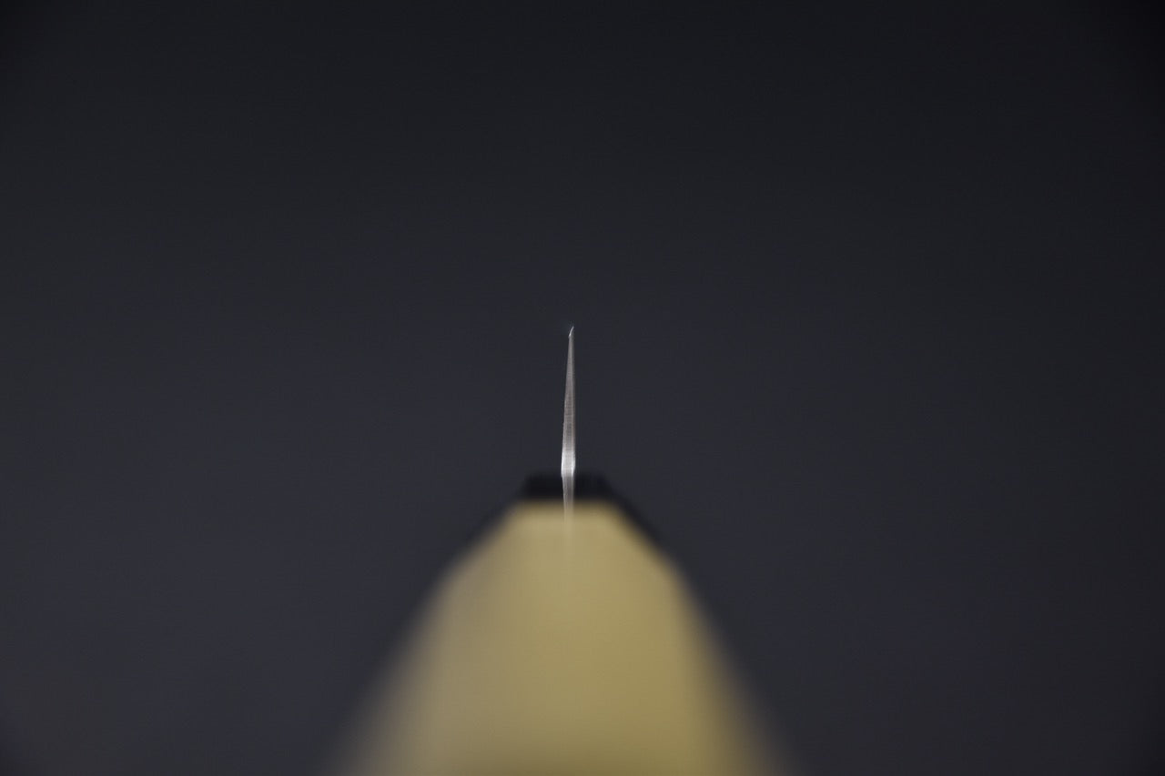 The octagonal magnolia wood handle with black pakka ferrule offers a light, well-balanced grip, suitable for both right- and left-handed users. Its traditional Japanese shape allows for precise control when making fine cuts, ideal for herbs, fruits, vegetables, or small pieces of meat and fish.