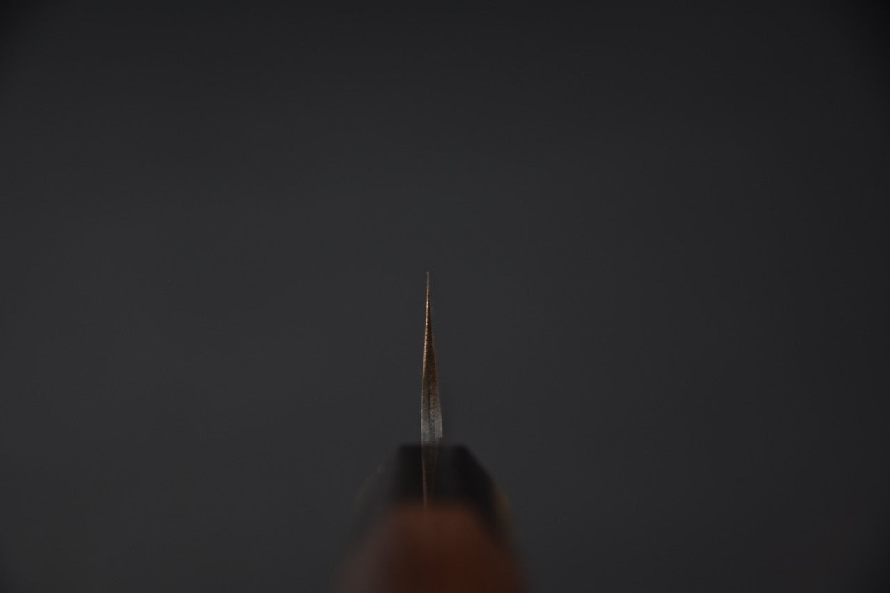 Discover the craftsmanship and precision of the Hitohira Hinode Paring Knife. Crafted from Shirogami #2 steel, this 90mm blade offers exceptional sharpness and durability, perfect for intricate tasks in the kitchen. The hammered tsuchime finish not only enhances its aesthetic appeal but also reduces friction, allowing for seamless slicing and peeling.