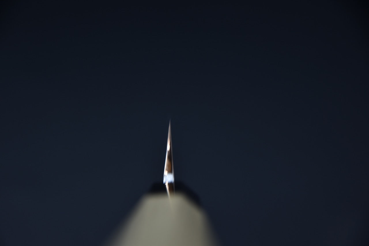 Yanagiba translates as “willow blade” since the narrow, long and curved blade shape on the back side resembles a willow leaf. The specialty of the Yanagiba is slicing fish in a precise and clean way for cutting sashimi or nigiri for example. It can also be used for filleting certain fishes and slicing meat.  The very fine cutting edge can be damaged easily, so we advise you to be careful with bones. The concave back of the knife (urusaki) creates an air gap between the fish flesh and the blade, making it easy to detach the blade from the fish flesh, while the bevel on the face of the knife (shinogi) makes it easy to detach the piece of fish being sliced. The Yanagiba is generally found between 210 mm and 330 mm.