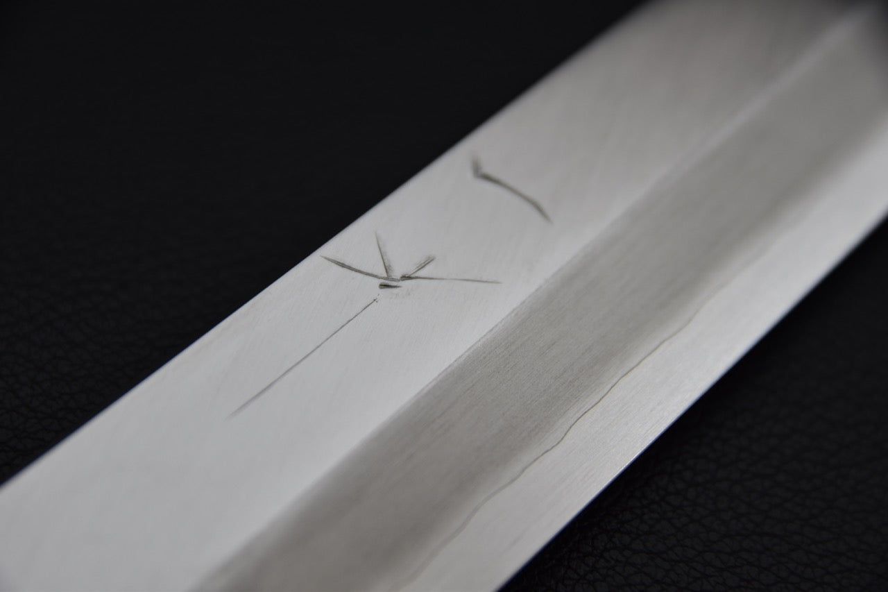 However, it should be noted that the Yanagiba's extremely fine edge can be easily damaged. Therefore, it is essential to exercise caution when using it, particularly avoiding contact with edges and bones. Improper handling could cause irreversible damage to the blade. Therefore, it is essential to take care of this delicate knife to maintain its optimal performance.