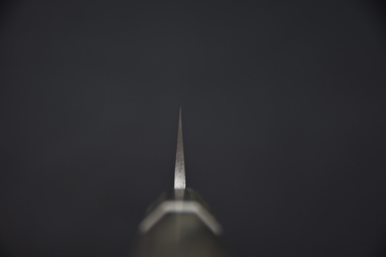 The Yoshikane forge was founded in 1919 in Sanjo/Niigata and is now run by 4th generation Kazuomi Yamamoto-san. He was trained by his uncle Tsuneo Yoshida (3rd generation) and is now established as one of the best blacksmiths in Japan, in addition to being recognized for his skills in blade sharpening. He would rival or surpass the best Sakai sharpeners. This explains why so many talented blacksmiths in Sanjo have been trained at Yoshikane's forge. Yoshikane is famous for its work of Shirogami #2 steel, SKD-11 steel and SLD steel.