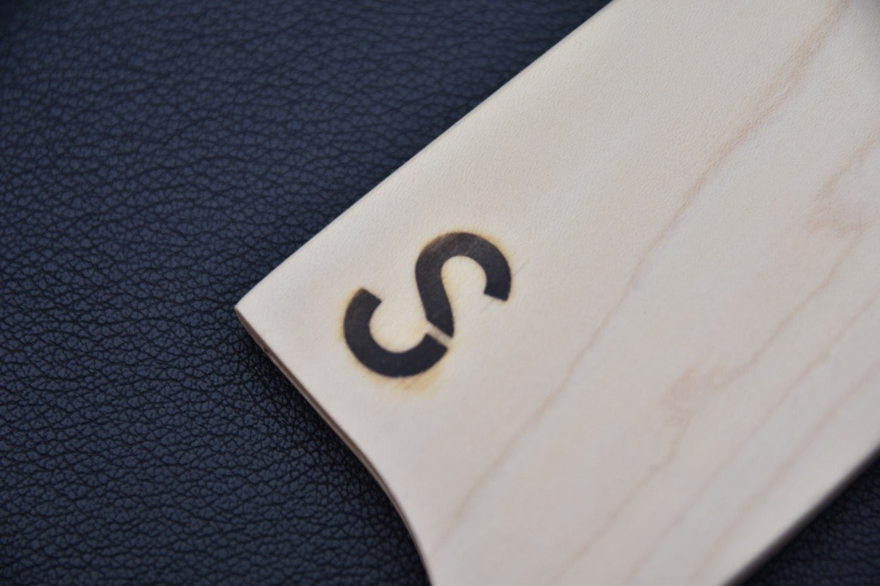 The logo burned into the wood adds a raw, contemporary touch, evoking the craftsmanship behind each piece. Lightweight and smooth to the touch, this saya blends harmoniously into the world of high-end Japanese knives and will delight enthusiasts keen to extend the life of their cutting tools.