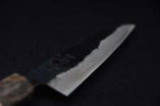 Discover the exquisite craftsmanship of the Hatsukokoro Sumi Petty Knife, a true masterpiece in Japanese cutlery. Crafted from premium Aogami 2 kurouchi steel, this 120mm blade offers exceptional sharpness and edge retention, making it ideal for precise cuts and intricate kitchen tasks. The kurouchi finish not only enhances its rustic aesthetic but also provides added protection against rust and wear.