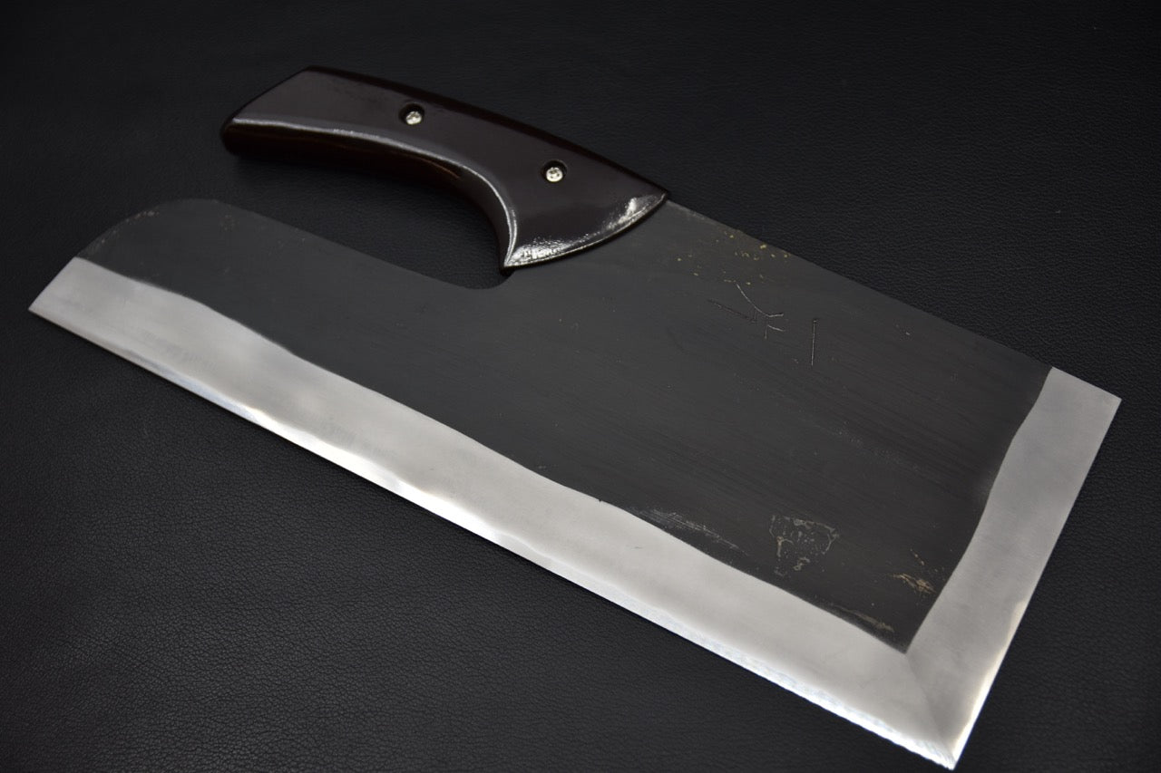 This 330 mm Hitohira Aogami #2 Kurouchi Japanese Sobakiri knife is designed for traditional soba noodle cutting, with a tall, rectangular blade designed for straight, clean, repeatable cuts. Its geometry emphasizes stability and control along the entire length of the blade, making it a specialized tool, very different from a versatile chef's knife.