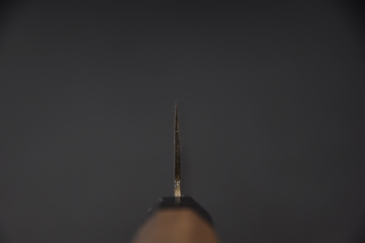 The Gyuto, also known as "牛刀" in Japanese, is a versatile knife that literally translates to "ox sword." It is considered the equivalent of a Western chef's knife and is specially designed to accomplish all kinds of cutting tasks, whether for vegetables, meat, or fish. Featuring a sharp blade and solid construction, the Gyuto is an essential tool for any professional or amateur cook who cares about the precision and quality of their cuts.