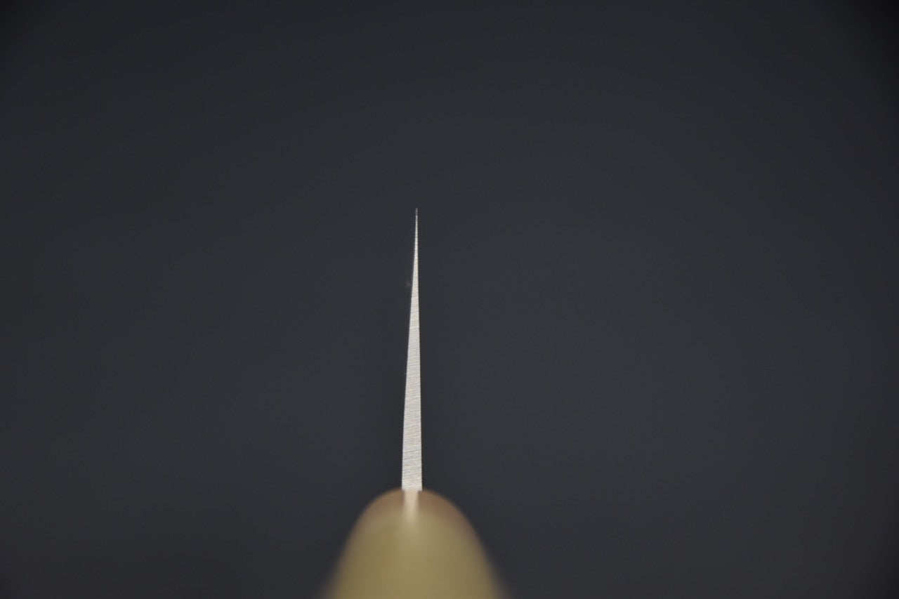 The Bunka is a general-purpose knife with a straighter edge profile than a santoku, which makes the rocking motion more difficult to perform. However, this knife is perfect for use with the push-cut or pull-cut method. The fine tip of the Bunka will give you precision and agility as it will pass through the food more easily when cutting.