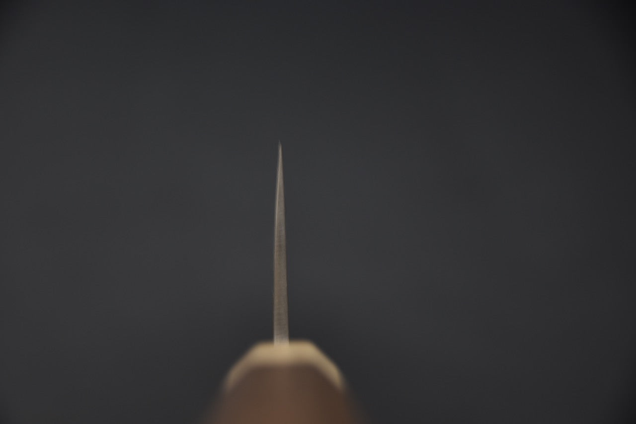 SLD steel is Hitachi steel co.'s version of SKD-11, a wear-resistant and relatively easy-to-maintain steel. This makes it ideal for workhorse knives. With a hardness of 60-62 HRC, SLD steel blades retain their edge for a very long time, and can be sharpened to a razor-sharp edge. Basically, SLD is used in factories to cut other steels and, over time, has found its way into high-end Japanese cutlery.